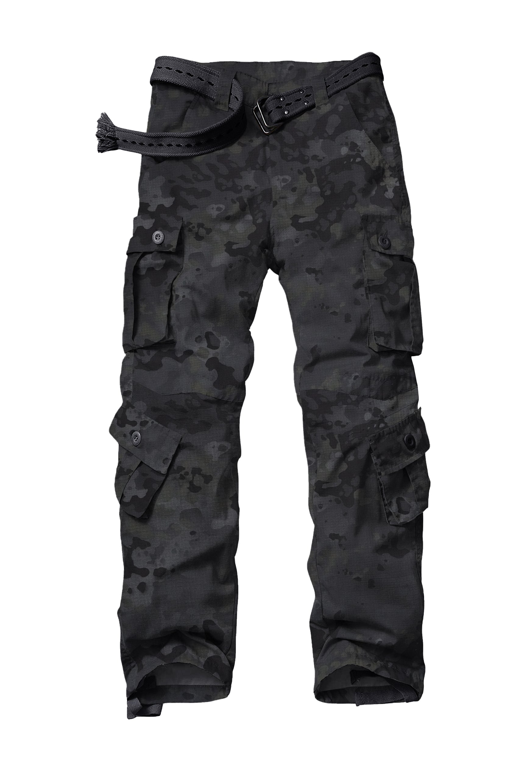 Work pants for men features Multi Pocket: Totally 8 Pockets include 2x front slash pockets; 2x large buttoned cargo pockets; 2x shin buttoned Pockets; 2x rear buttoned pockets which help you to carry tools, connectors, toners and other personal items. And one left front zipper fake pocket is a good decoration.